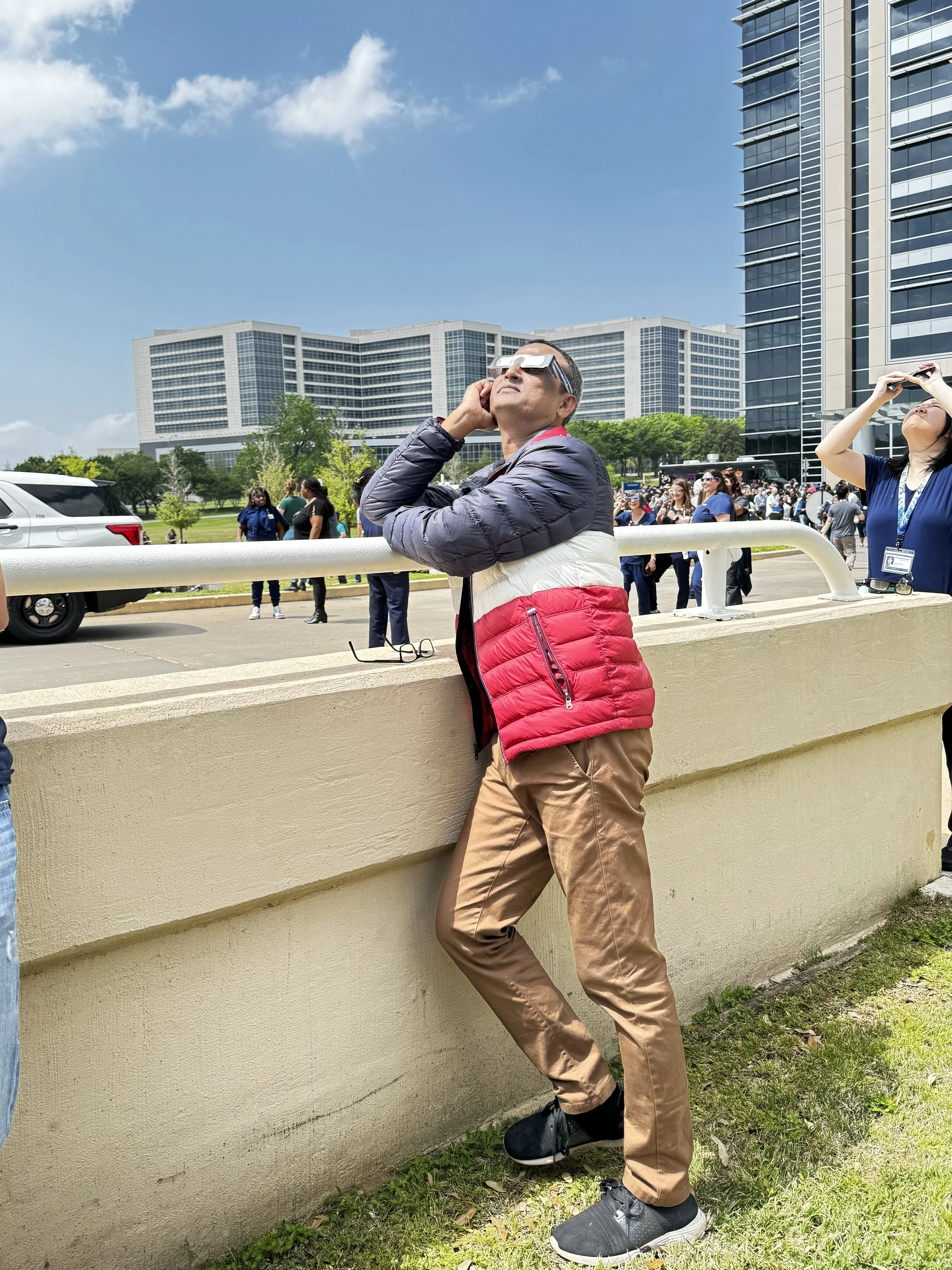 Watching the eclipse at UTSW with the lab and @jkpfeiff and @JosephineThinwa! What an awe-inspiring experience!