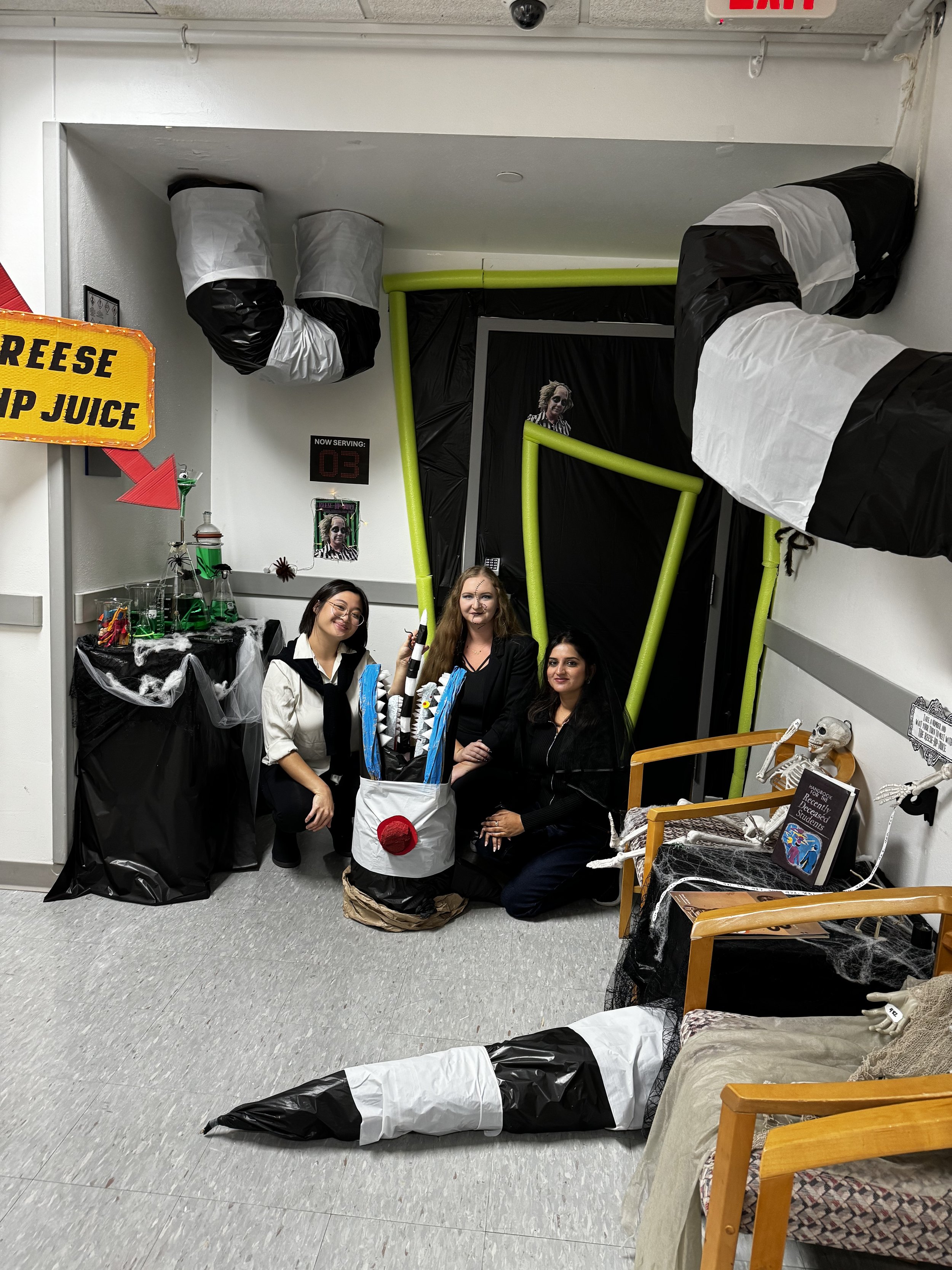 Halloween 2024 was a success! Magda, Maham, and Irene created an awesome Beetlejuice themed door and won the prize for best door in the Immunology Department!
